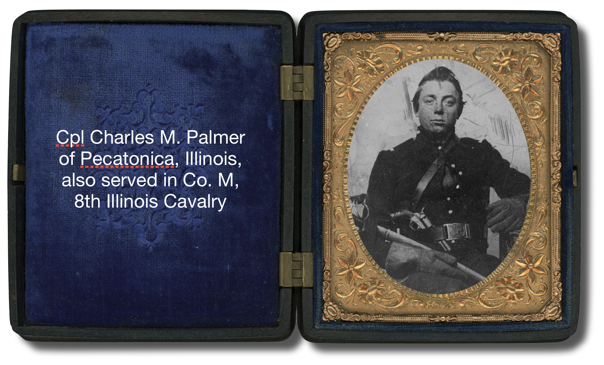 In Illinois military records, Michael Johnson Fancher (1838-1905) was described as standing 5’9″ tall, with light hair and gray eyes—a 23 year-old farmer from Killbuck, Ogle county, when he enlisted on 22 September 1861. Likewise, Mervin D. Overacker (1834-Aft1880) was described as standing 5’7″ tall, with light hair and blue eyes—a 27 year-old teacher from South Grove, Dekalb County, when he enlisted in the 8th Illinois Cavalry on 23 September 1861.