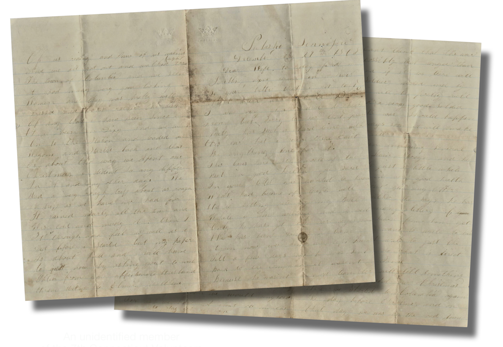 Well now, I will tell something about how we spent our Christmas here. We started to Columbia again the day before Christmas and on that day we was on the road, some of us riding and some of us marching and we all got out and walked right through the town of Columbia and we seen a good many very good-looking women and they was pretty well dressed and looked rather the best of any that I have seen since I have been in Dixie. And we went on to the station and loaded our wagons and started back and that is about the way we spent our Christmas. I didn’t say any difference in it and any other day. We had a very rough trip—about as rough a trip as we have ever had for it rained nearly all the time and was cold and muddy. But then I got through and feel as well as I did before I started.